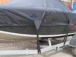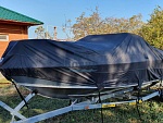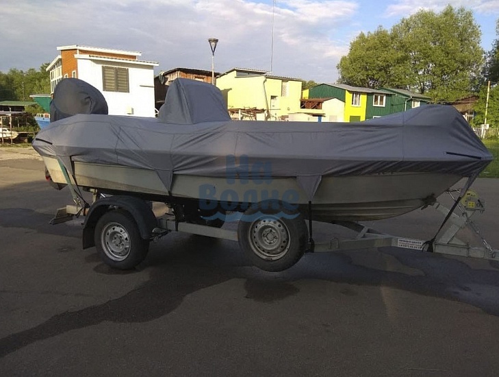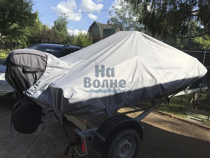 Полная защита: Чехол полностью закрывает лодку до водной линии. Вшитая стропа по периметру и стропы крепления к прицепу спереди, по бокам и сзади обеспечивают надёжное закрепление чехла во время транспортировки и предотвращает попадание внутрь пыли и влаги.