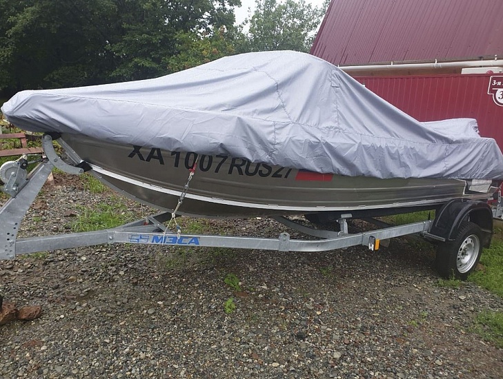 Вес чехла зависит от размеров лодки и типа ткани, обычно изделие весит 4-7 кг из «Оксфорда» и 2-3 кг из «Таффеты»
