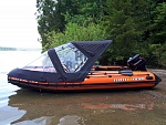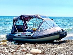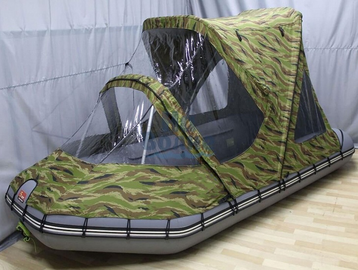 Многофункциональный ходовой тент, объединяющий в себе носовой тент и полный тент-палатку, 3 в 1. Позволяет легко отстегивать и пристегивать дополнительные части