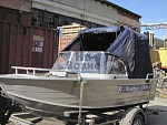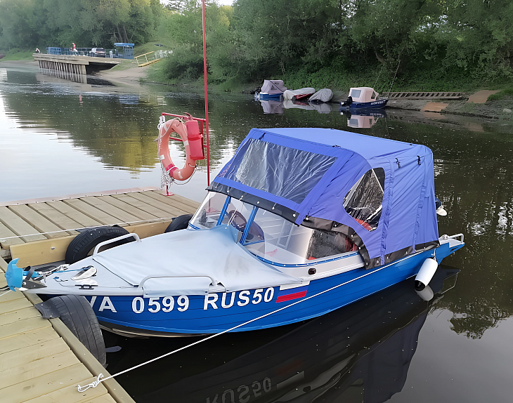Боковины тента оснащены капитанскими окнами и могут быть полностью подняты, что создает открытое пространство вокруг лодки и обеспечивает легкий доступ к бортовой части. Это особенно удобно при стоянии на причале или для загрузки и разгрузки оборудования.